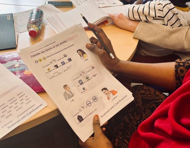 Nous n’oublions jamais que les femmes exilées ont derrière elles un parcours, une expérience et des savoirs qui ont tout intérêt à être partagés, pour que chacune se sente prise en compte dans son entièreté, et que l’enseignement ne soit pas vertical mais mutuel.