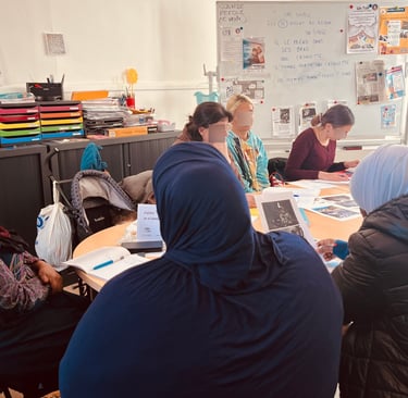 Les cours de l’École Bisan se déroulent uniquement en présentiel, en non-mixité, pour toutes les raisons évoquées dans la rubrique "l'association". L’objectif n’est pas d’exclure les hommes, qui disposent par ailleurs de possibilités de formation linguistique en mixité auprès d’autres associations, mais de lever les freins à l’apprentissage du français par les femmes.