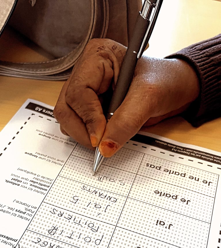 Pour la majorité des femmes exilées, le français n’est pas une deuxième langue, mais une troisième, quatrième ou cinquième langue apprise. Le plurilinguisme, au même titre que l’interculturalité, est sans cesse valorisé dans les cours de l’École Bisan.