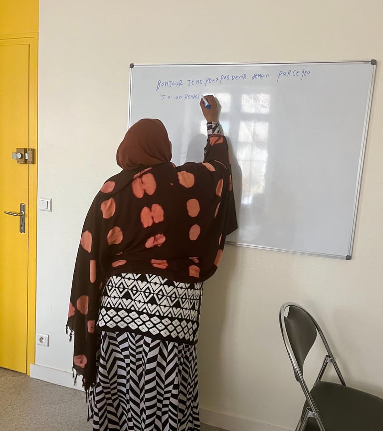 Peu à peu, elles prennent conscience de leurs facultés d’apprentissage et des progrès réalisés à chaque cours. Alors seulement, la glace se brise, des liens se créent entre les apprenantes et les interactions deviennent plus fréquentes, plus spontanées, plus fluides. C’est à partir de ce moment que l’apprentissage du français peut réellement débuter.
